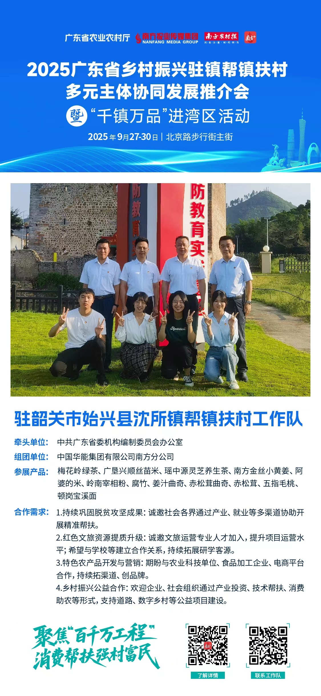 9月27日,为期四天的2025年广东省乡村振兴驻镇帮镇扶村多元主体协同发展推介会暨“千镇万品”进湾区活动将在广州市北京路拉开帷幕。期间,工作队将带着当地的特色农产品——广垦兴顺丝苗米、南方姜、五指毛桃、宰相粉、茶叶、腐竹等特色农产品亮相广州,向湾区市场展示这个粤北小镇的独特魅力。